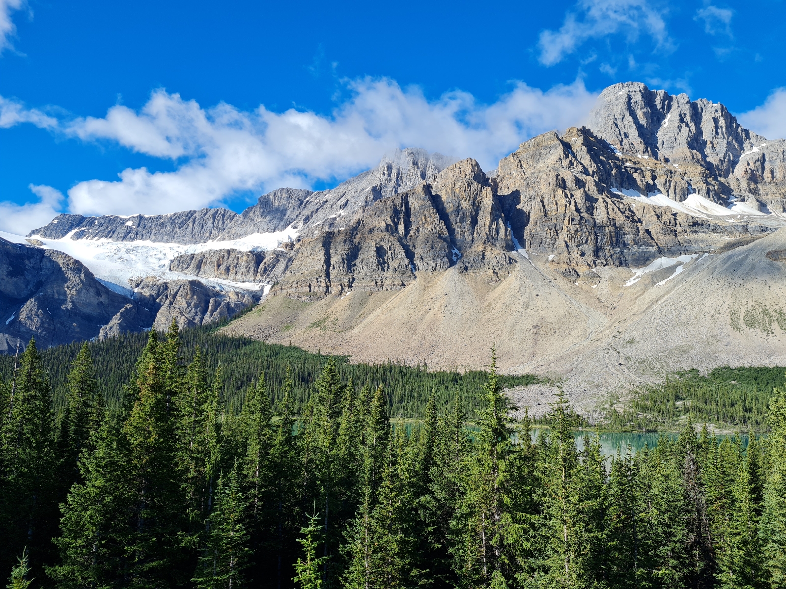 De eerste stop die we maakten was bij Crowfoot Glacier. Een gletsjer hoog in de bergen.
